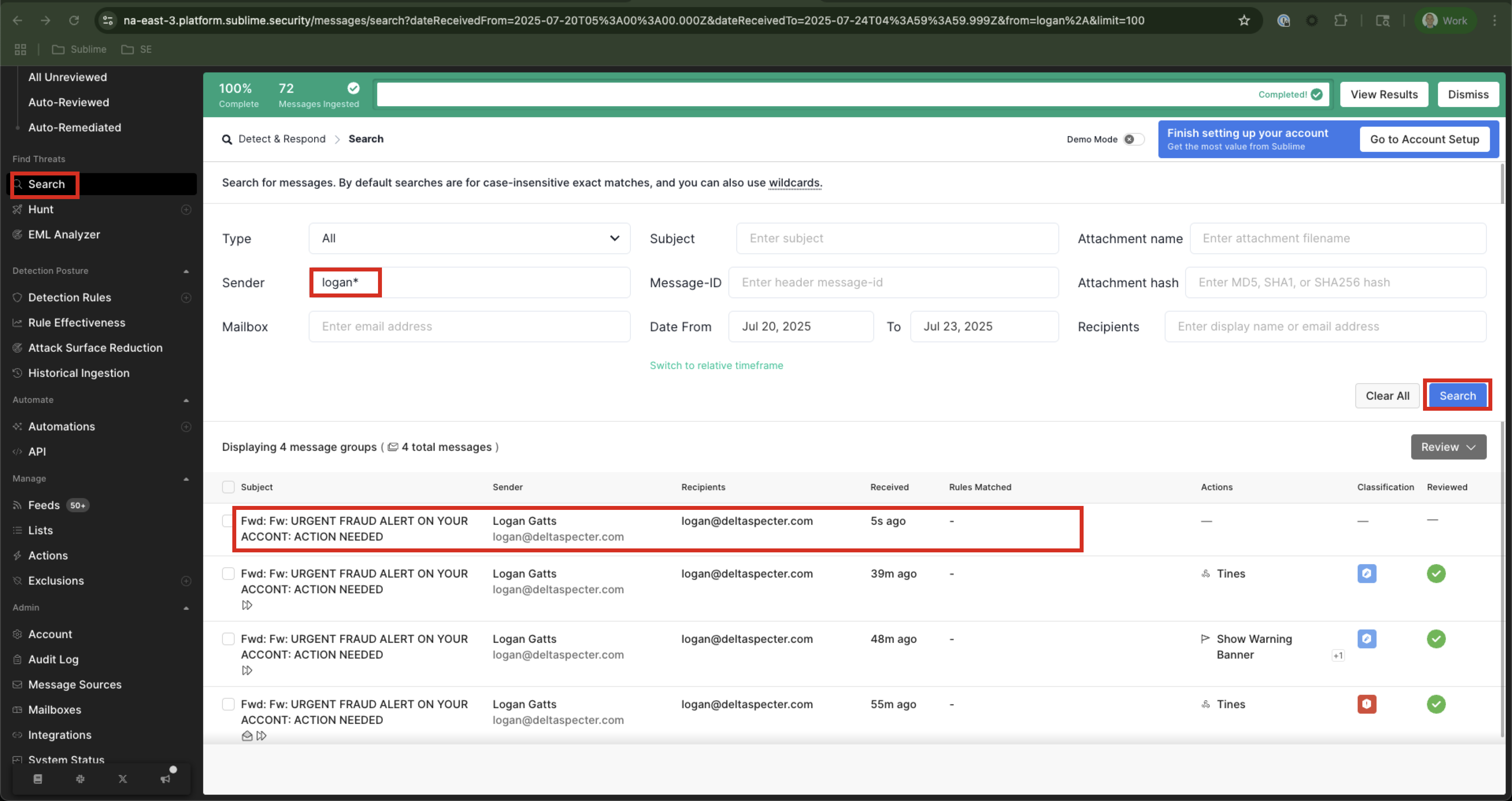 , then search for an email that is not important/can be used for simulation/testing. Click and open that email