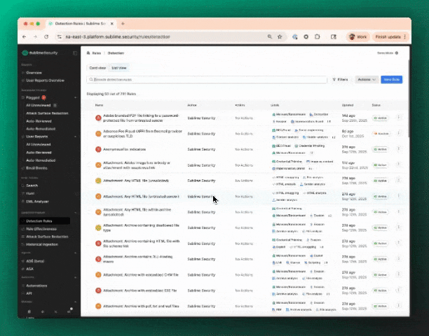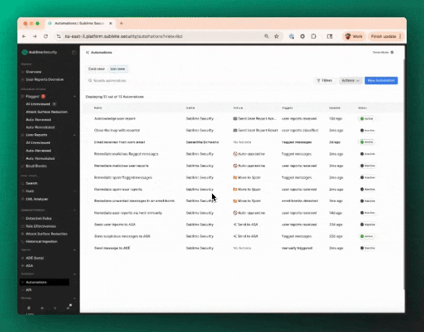 - Click "Detection Rules" or “Automations” in the left nav of your Dashboard